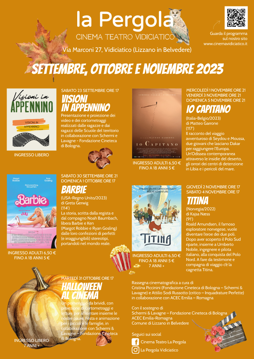 Il progetto Visioni in Appennino è promosso e realizzato da IC Salvo D’Acquisto di Gaggio Montano, IC Loiano-Monghidoro, IC Vado-Monzuno, Schermi e Lavagne – Fondazione Cineteca di Bologna, Coooperativa Madreselva, Cinema Teatro La Pergola, Circolo Cinema e Cinema Vittoria di Loiano, Mammut Film, Banda Bignardi di Monzuno, Centro Studi Savena Setta Sambro. Iniziativa realizzata nell’ambito del Piano Nazionale “Cinema e immagini per la Scuola” promosso dal Ministero della Cultura e Ministero dell’Istruzione.