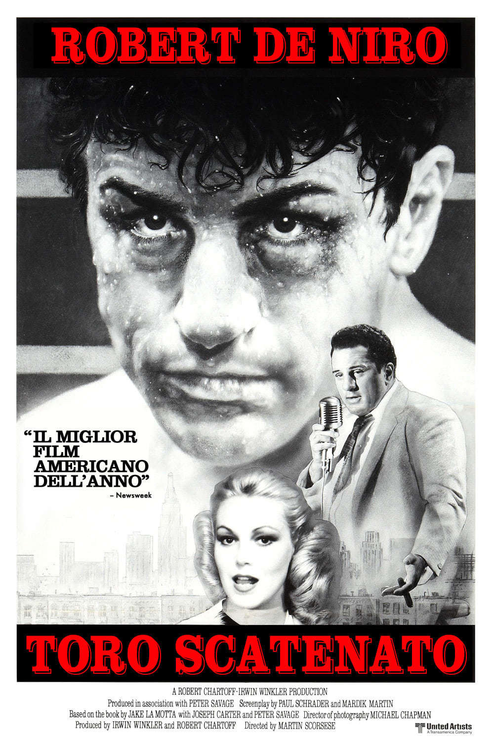 La figura epica e turbolenta di Jake LaMotta porta, sul proprio corpo martoriato, decenni di cinema sulla boxe, distillando alla perfezione la vena ostinata e disperata dei suoi protagonisti. LaMotta, nel corso di una vita inimitabile, lotta all’ultimo sangue per sopravvivere a se stesso, tentando vanamente di non precipitare nella spirale dei propri fallimenti.