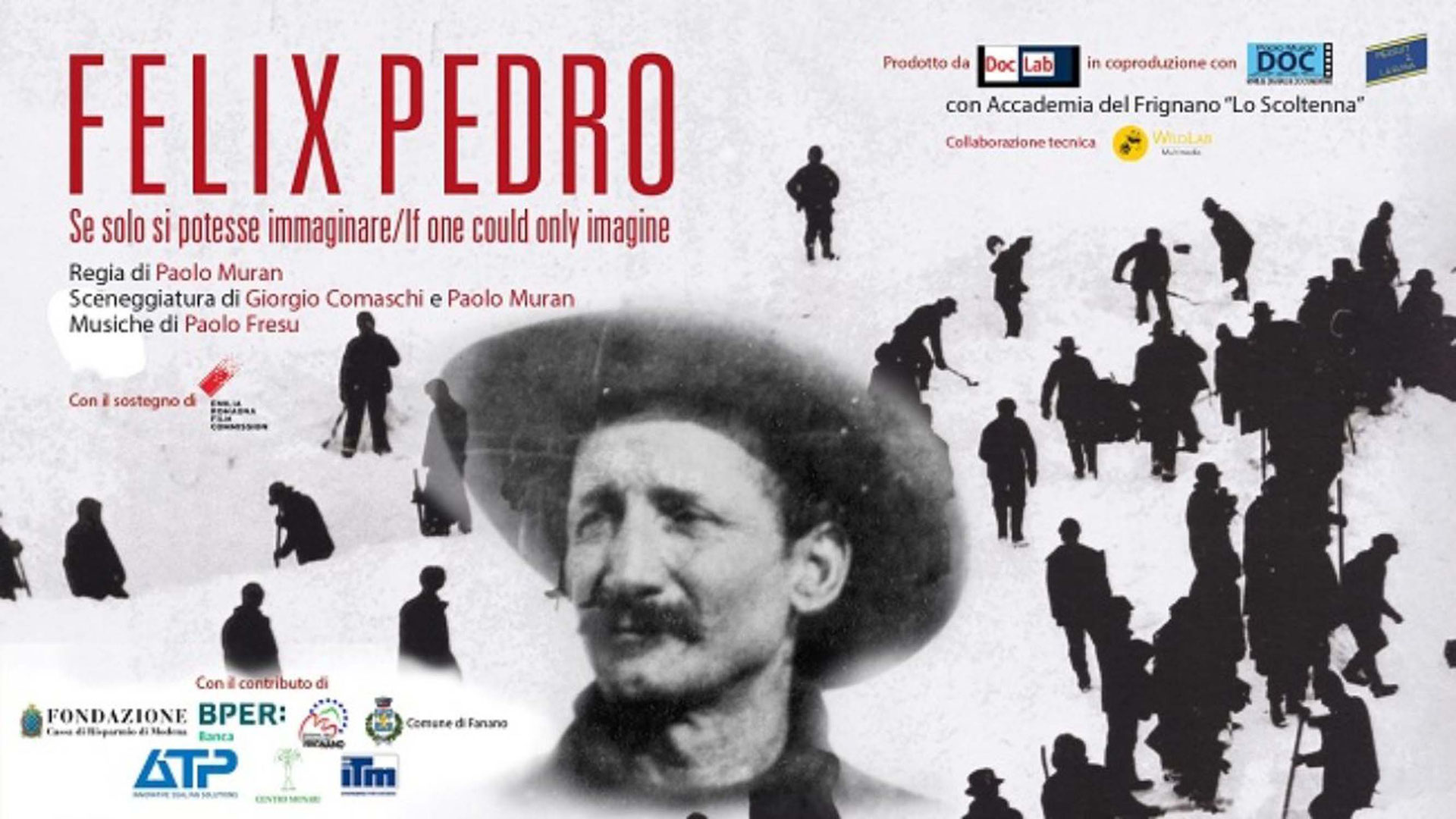 Da Fanano all’Alaska. Paolo Muran porta sul grande schermo l’incredibile storia di Felice Pedroni, alias Felix Pedro, il fortunato cercatore d’oro emiliano che, nel 1902, fondò la città di Fairbanks. Una storia di silenzi, fatiche, freddo e fame. Di ostinazione e voglia di scappare dalla miseria. Una storia che parla a coloro che sono tenuti in vita dalla necessità costante di cercare qualcosa e che risveglia il pioniere e l’avventuriere che c’è in ognuno noi. Musiche di Paolo Fresu.