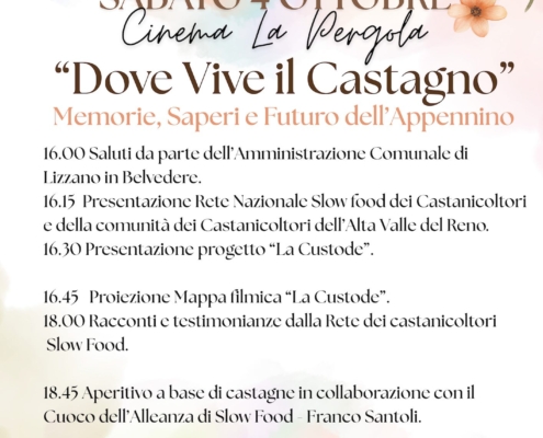 Sabato 4 Ottobre 2025 un evento promosso da Associazione Castanicoltori dell’Alto Reno e Comune di Lizzano in Belvedere, in collaborazione con Associazione Culturale Atlante e Slow Food – Rete dei Castanicoltori