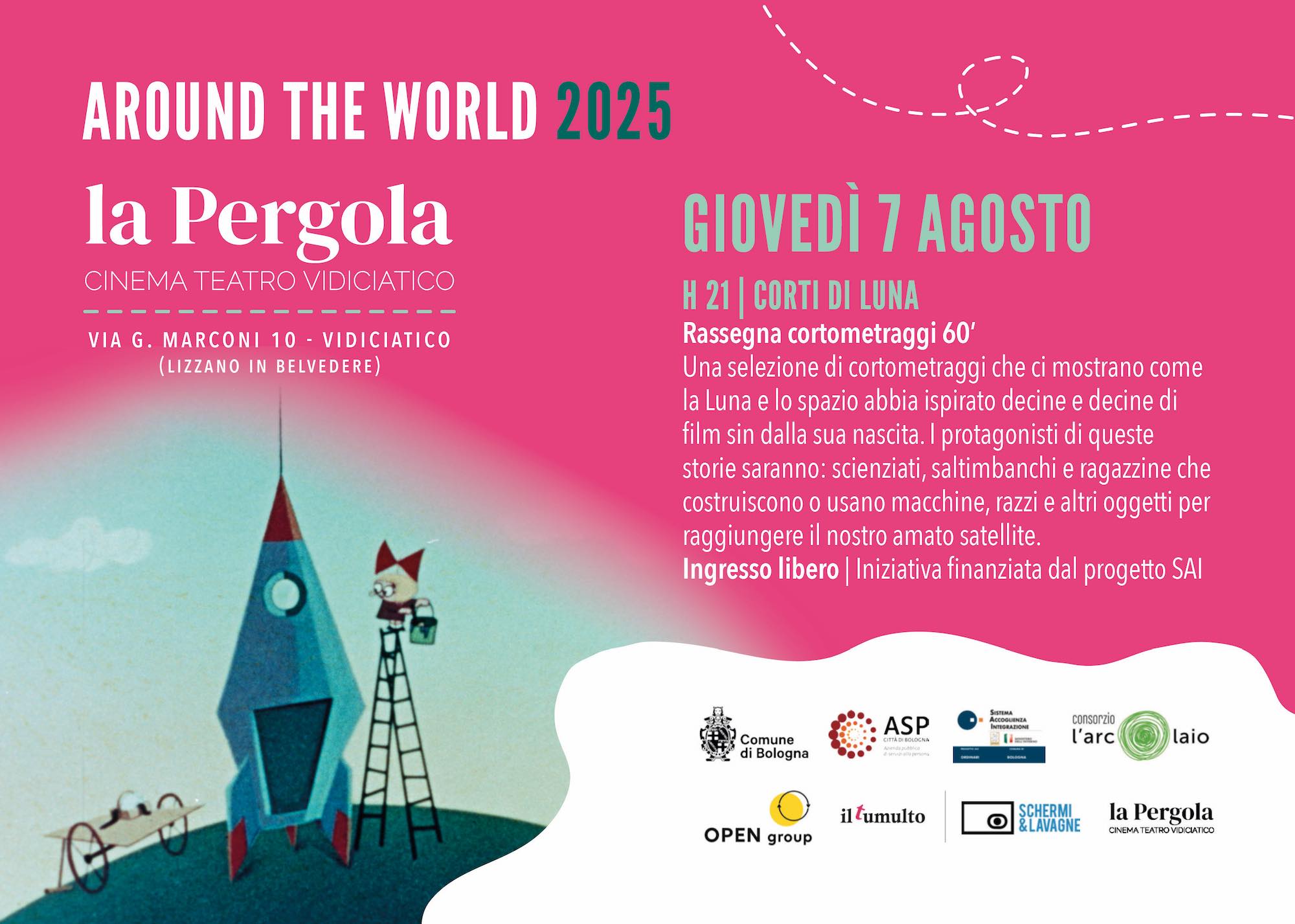 Around the World è un viaggio tra le tante cinematografie, un percorso che attraversa longitudini e latitudini diverse per conoscere un altro modo di fare cinema, ma soprattutto un altro modo di vedere il mondo. Una rassegna dedicata alle bambine e ai bambini, a cura di Schermi e Lavagne / Fondazione Cineteca di Bologna, organizzata in collaborazione con il Sistema di Accoglienza e Integrazione (SAI / Progetto territoriale del Comune di Bologna) e Open Group – progettualità dedicate all’accoglienza di persone richiedenti e titolari di protezione internazionale.